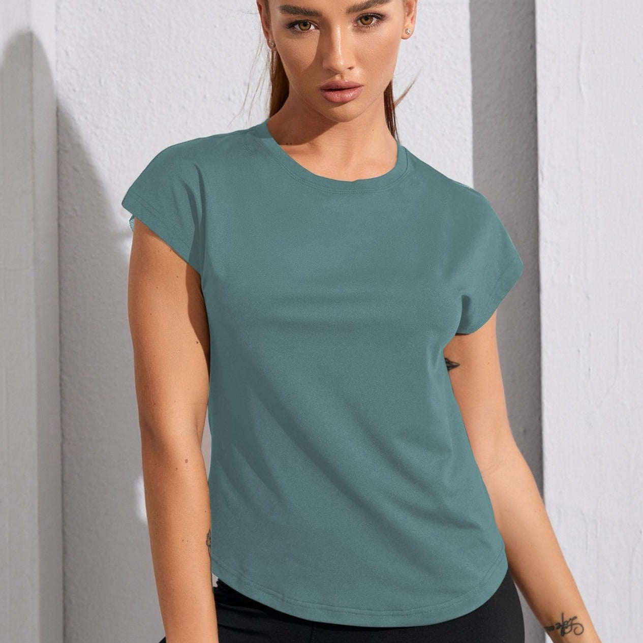 Camiseta deportiva para mujer con mangas murciélago y detalle transparente - Sasha