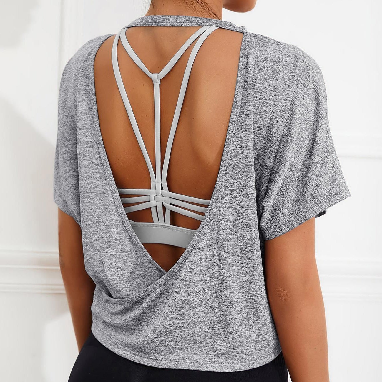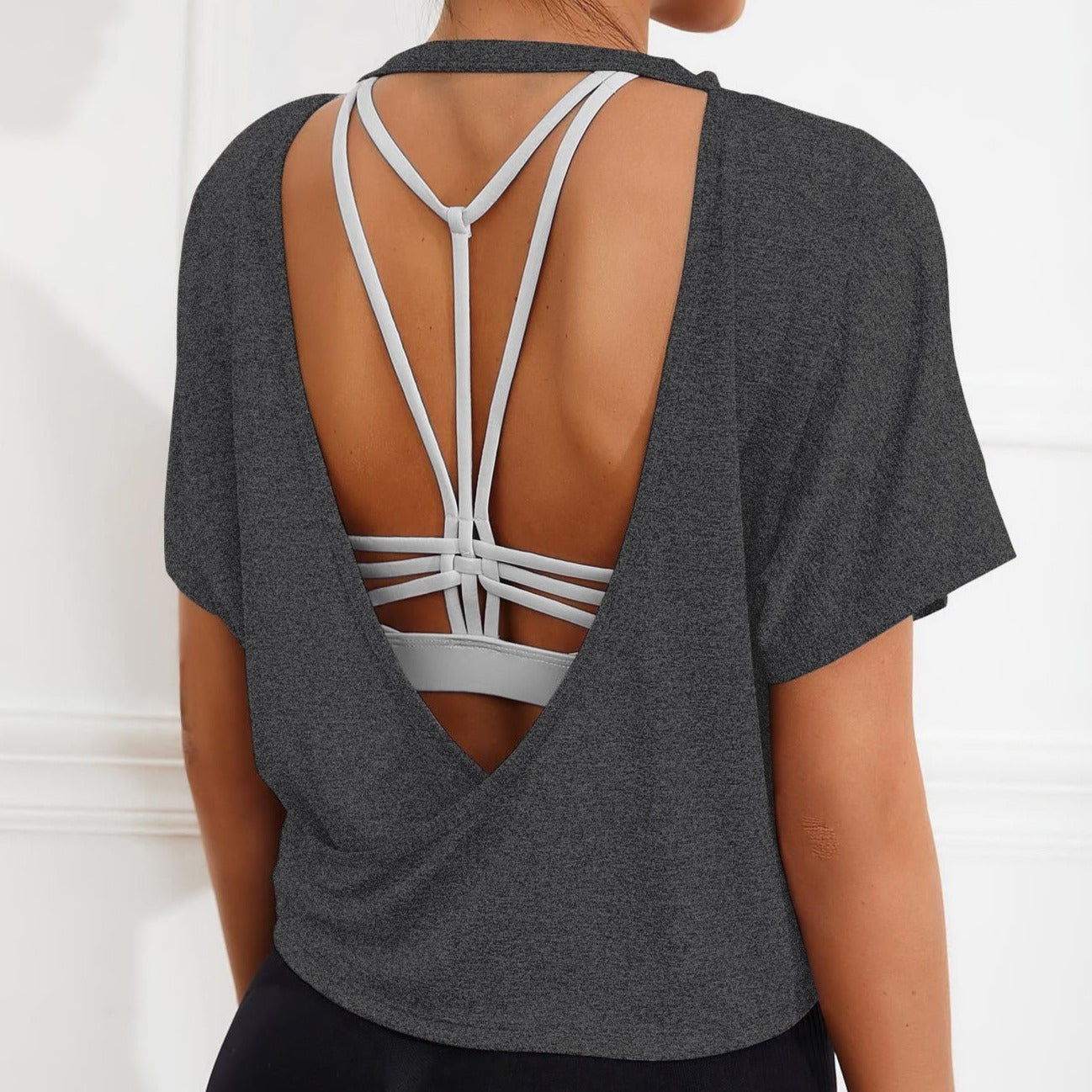 Camiseta deportiva para mujer, sin espalda, manga corta, Solis