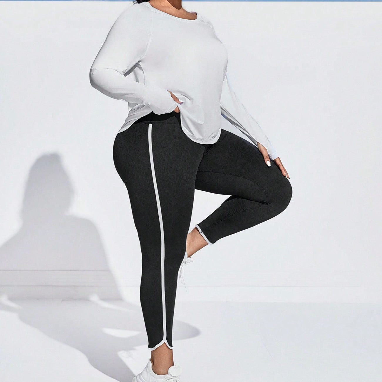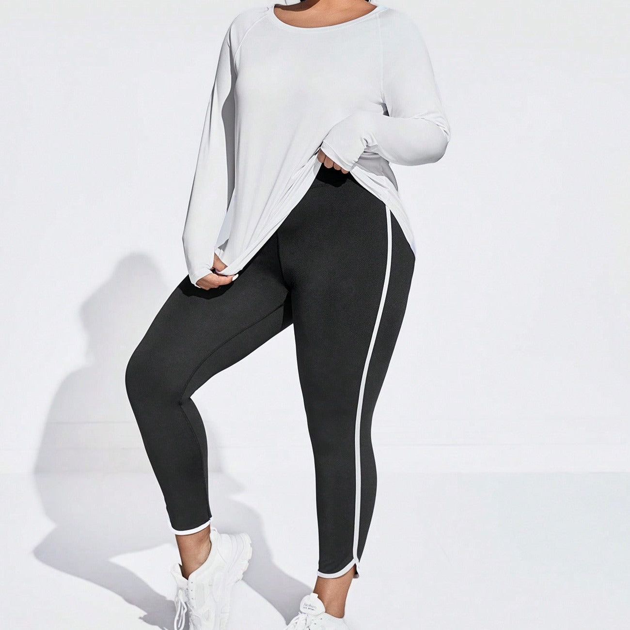 Conjunto deportivo para mujer: camiseta de cuello redondo y leggings, marca Gales. Talla grande.