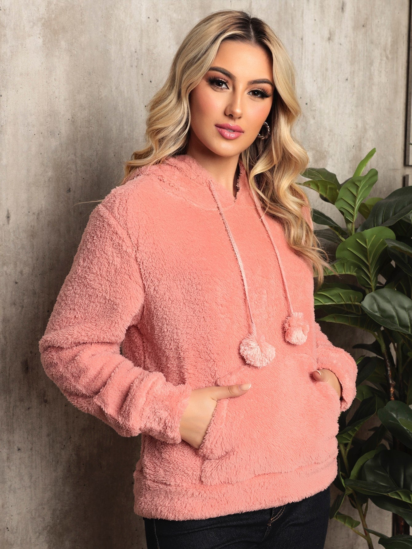Sudadera con capucha estilo osito de peluche para mujer