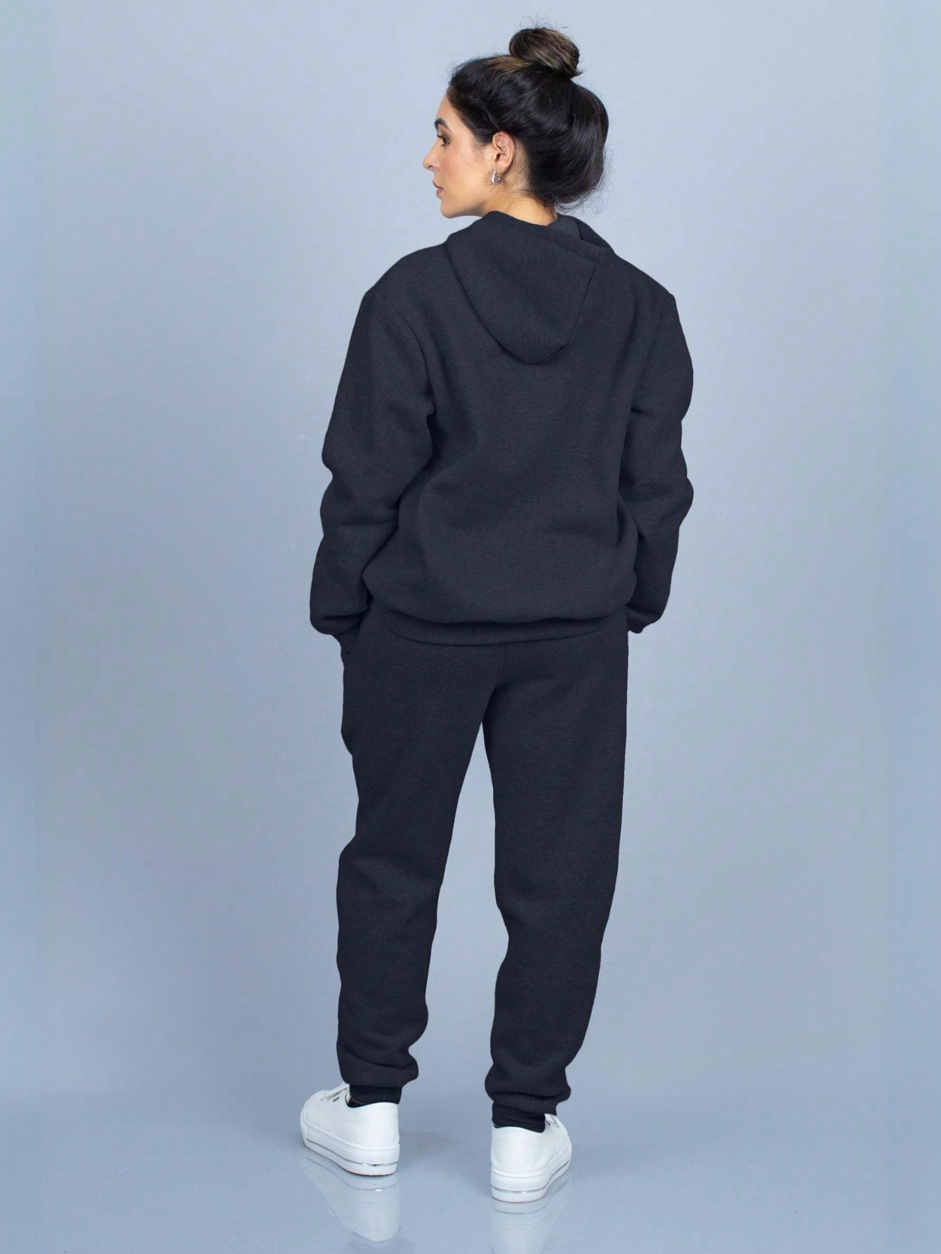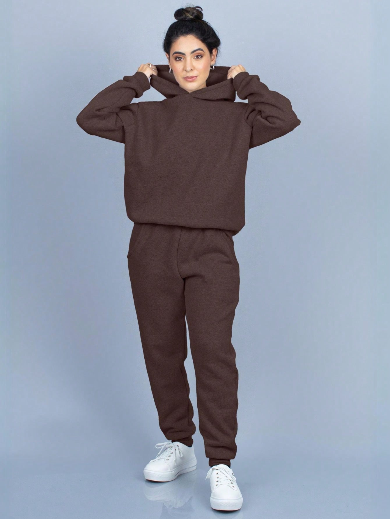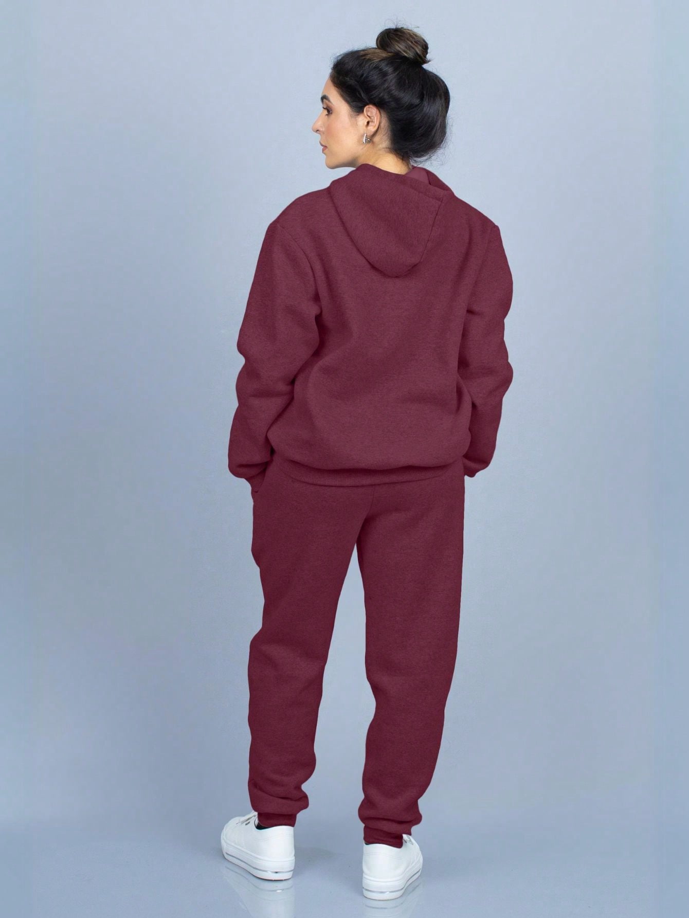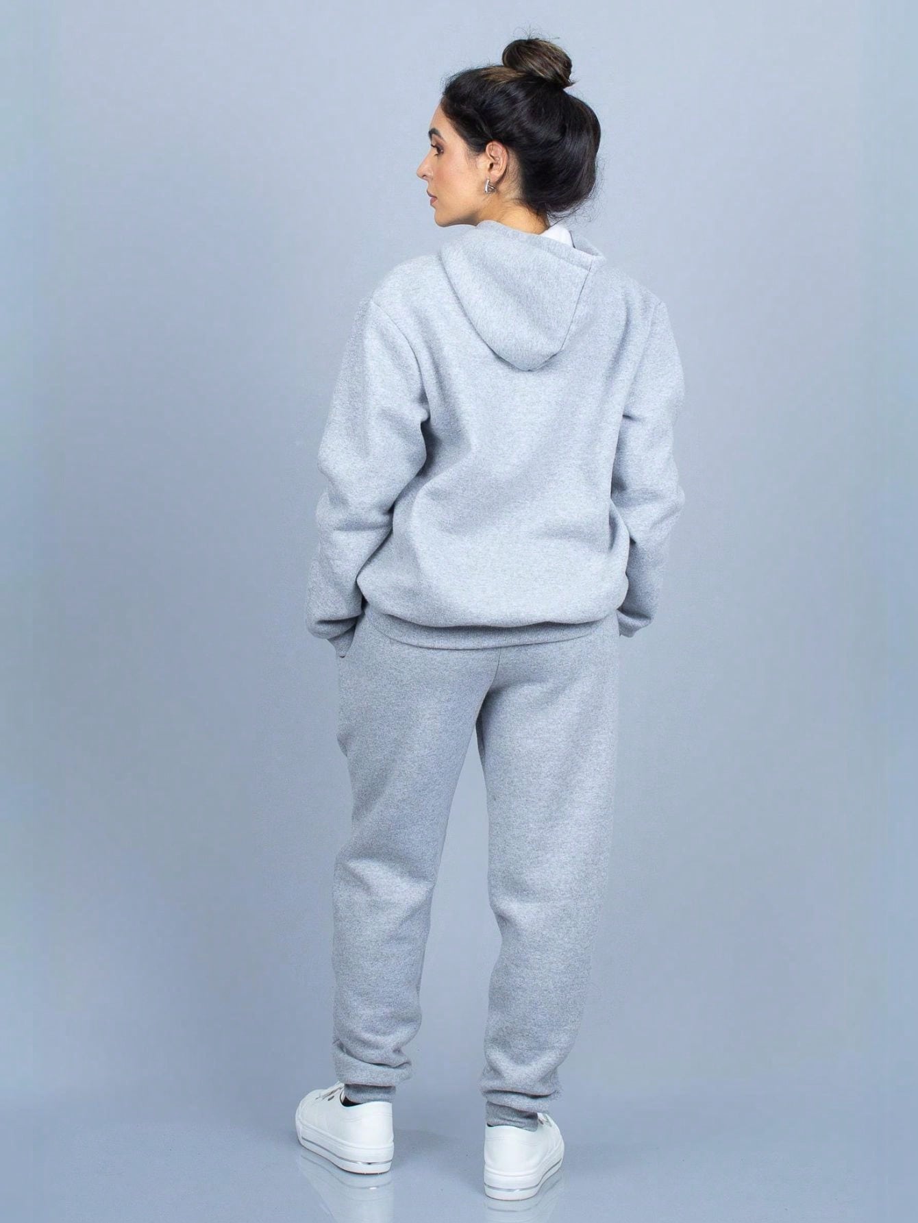 Conjunto de sudadera con capucha de franela lisa
