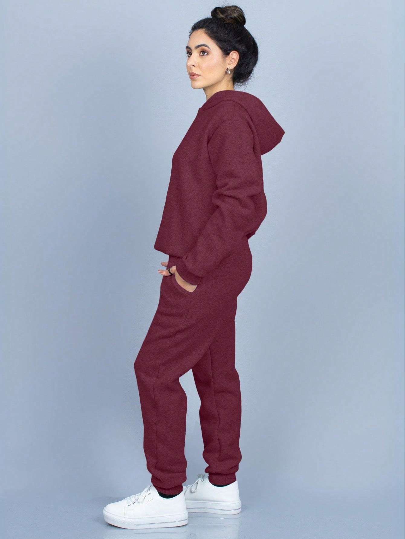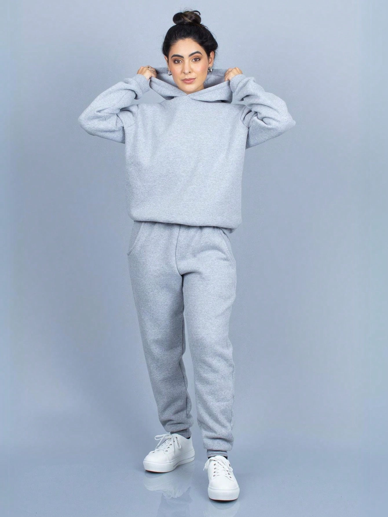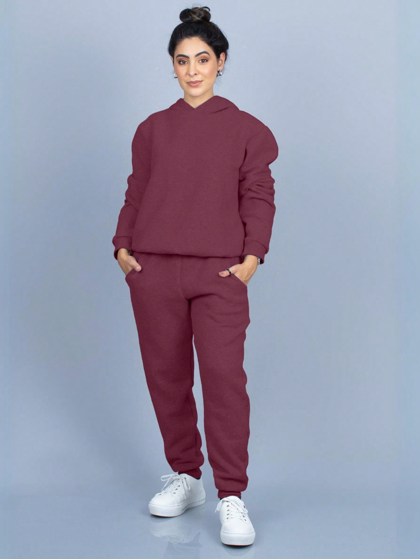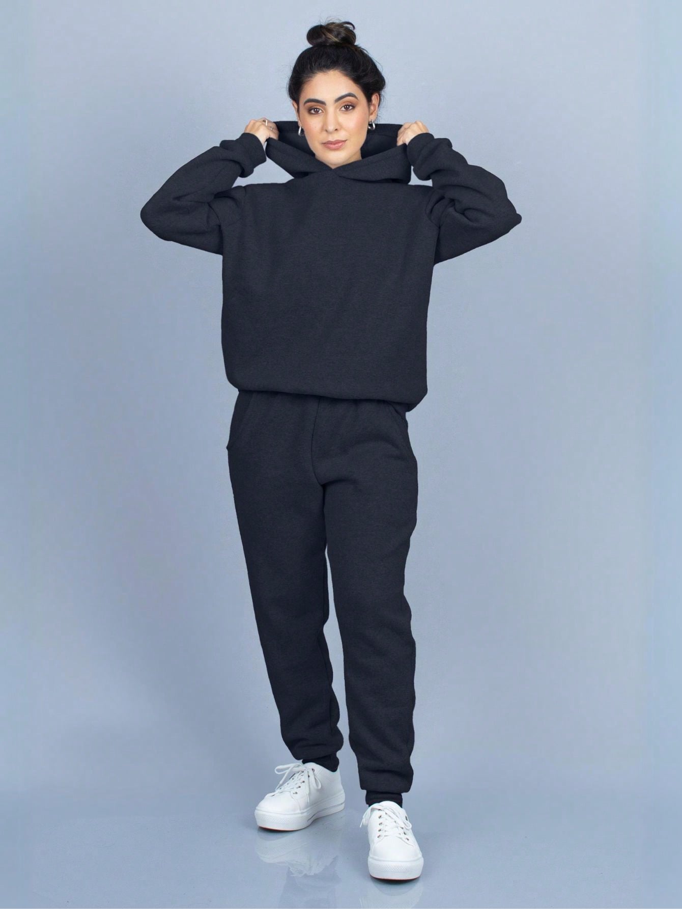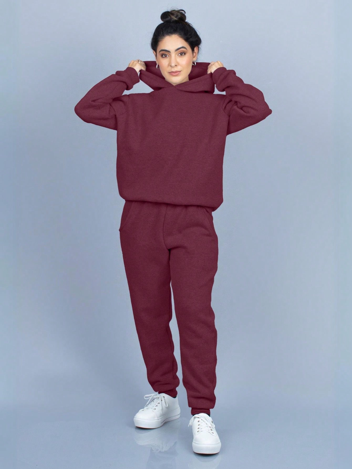 Conjunto de sudadera con capucha de franela lisa