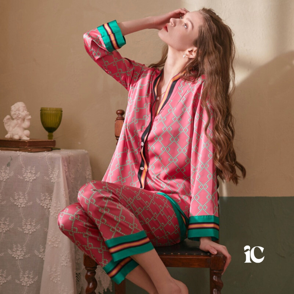 Pijama largo de satén icónico para mujer