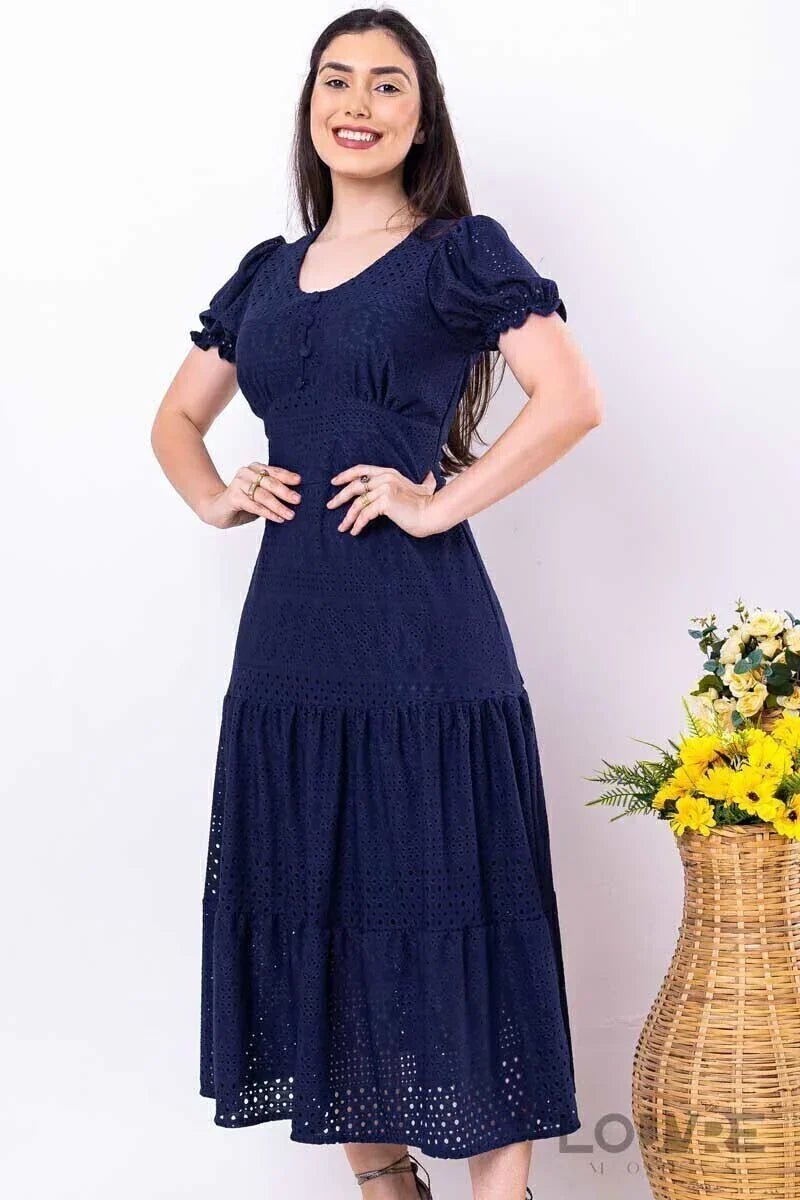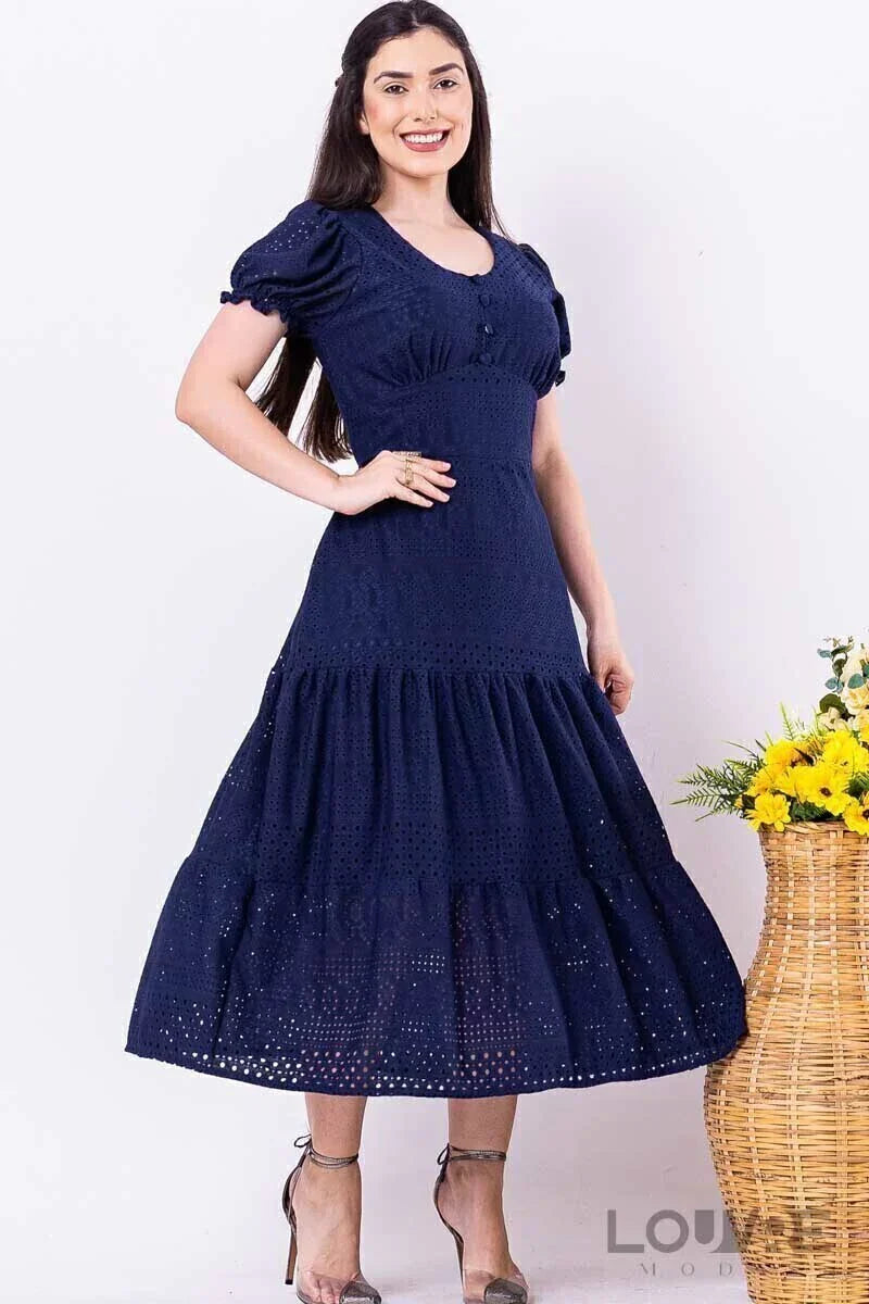 Vestido de punto de encaje azul marino con forro