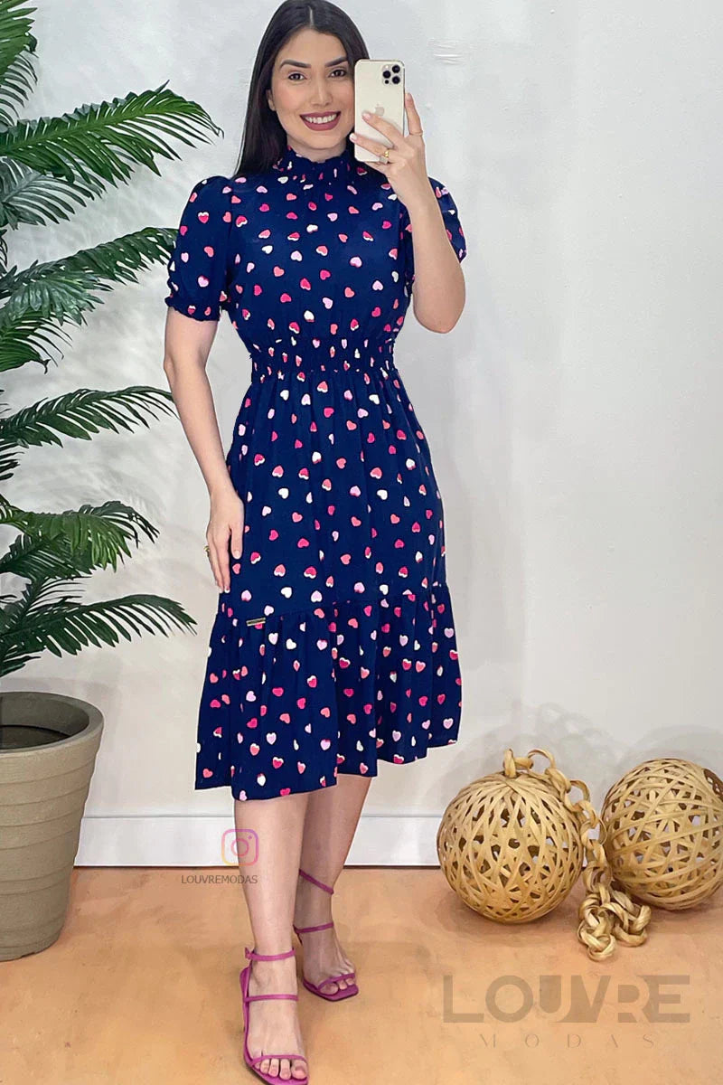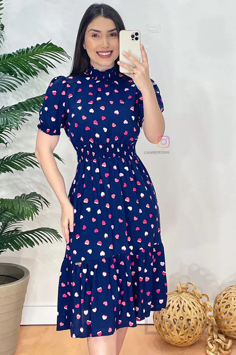 Vestido con estampado de corazones y cintura elástica.