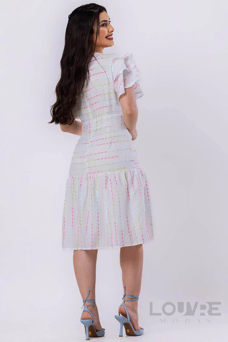 Vestido de algodón bordado con mangas con volantes.